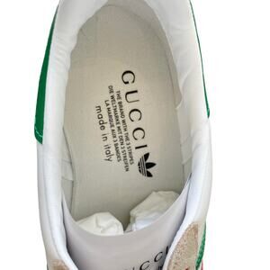 Elevate your style with these designer Gucci x Adidas Gazelle leather wedge sneakers. The perfect combination of fashion and function, these lace-up platform shoes feature a stunning white color with a sleek wedge heel style. Made with premium leather, these shoes are perfect for any fashion-conscious woman who wants to make a statement.