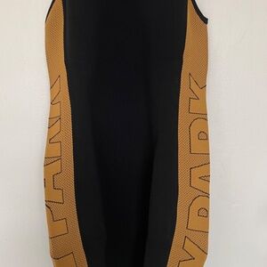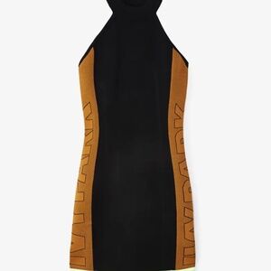 The knit hugs your curves with contrast panels that flaunt your shape. It's finished with a sophisticated high collar. Turn the outside noise into your own beat. Bodycon fit