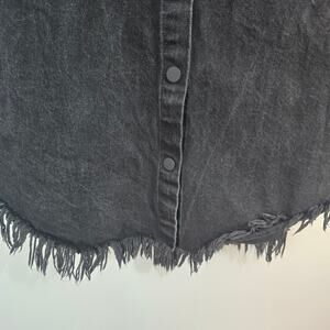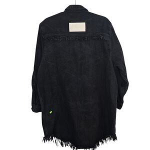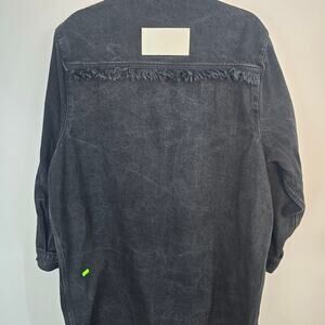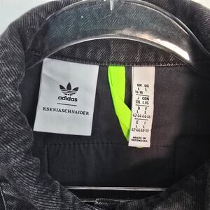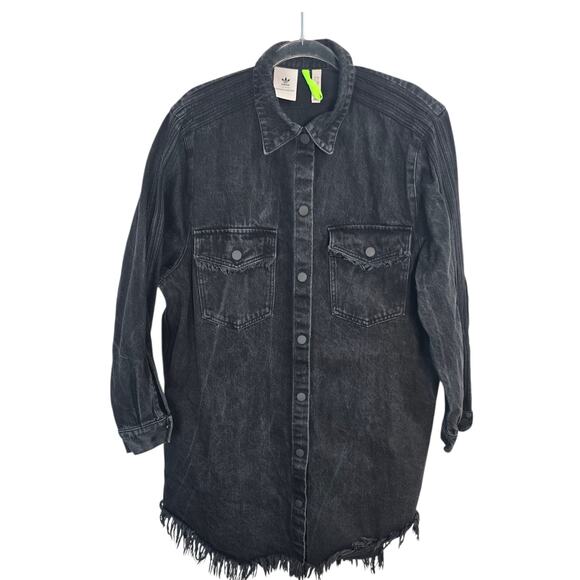 Adidas x KSENIASCHNAIDER Black Denim Fringe Shirt Dress Snap Front Large