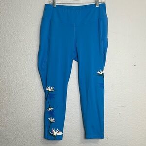 Adidas x Thebe Magugu Womens Plus Size Blue Floral 7/8 Pull On Leggings Size 2X