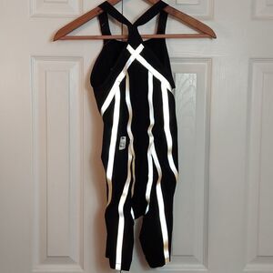 Curled up on the starting block, you wait for the beep. It's the moment of truth. The high-performance fabric and compressive fit of this adidas Adizero swimsuit are designed to help you find your fastest gear on race day. Strategically placed tape enhances body positioning and propulsive power.