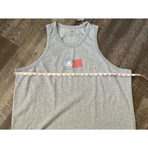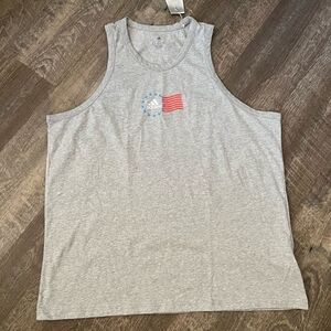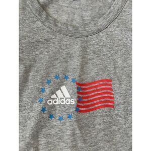 This listing is for a NWT's Adidas American Flag Tank Top in grey, size 2XL. Ultra-soft and lightweight, this sleeveless top from adidas features crewneck styling and an American flag graphic at the front.