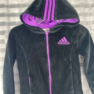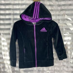 Adidas Black/Purple Velour Zip Up Hooded Jacket