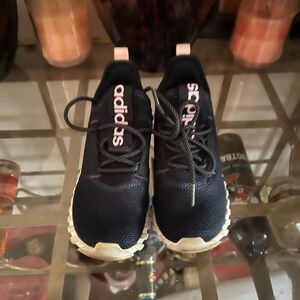 These Adidas sneakers feature a sleek black and pink colorway, combining style with functionality. Crafted with mesh and synthetic materials, they offer breathability and comfort for everyday wear. The low-top design and traditional lacing system ensure a secure fit, while the contrasting white soles add a touch of modern flair. Size 1