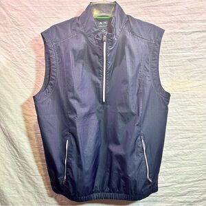 Breathable and waterproof, this Adidas Climaproof vest is great for golfing, running, or hiking. Size medium, it’s a dark blue with a green trim.