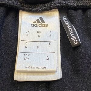 Adidas Climawarm Black Leggings Size Small. Gently used condition. Elastic waist with missing drawstring. 2 front pockets. Measures waist 26”, inseam 22”, rise 10.5”.