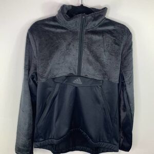 Adidas Fleece Pullover Womens Medium Faux Fur Half Zip Kangaroo Pocket NEW Black
