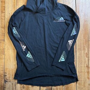Adidas Girls size M 10 to 12 Black Hooded Long Sleeve Tshirt