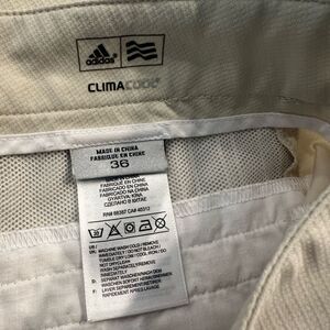 Great condition pair of golf shorts from Adidas in men’s size 36. Lightweight khaki Ripstop ClimaCool fabric with zip and button front closure. Vented. Pockets front and back.
