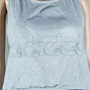 (OO) Adidas Gray Cropped tank top with vinyl letters & emblem, Size Medium, no size tag so see measurements to ensure proper fit
