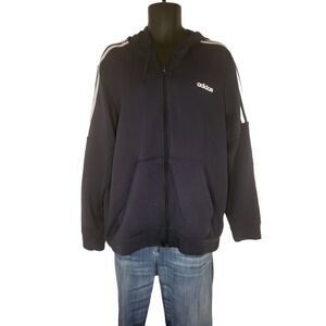 Adidas Hooded Track Jacket Men Sz XL Full Zip Black Workout Athleisure