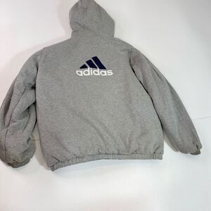 Adidas Jacket Mens Large Blue Reversible Full Zip Drawstring Hooded Vintage