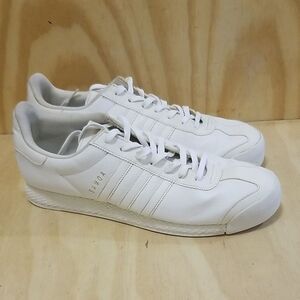 Classic Adidas Samoa sneakers in white. Sleek design with signature stripes. Comfortable and stylish for daily wear.