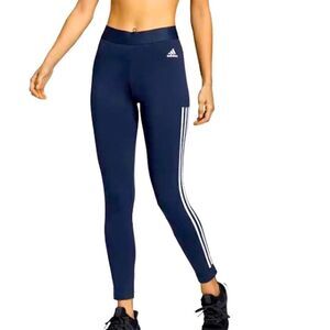 Adidas New Climalite 3 Stripe 7/8 Athletic Leggings In Navy Blue S