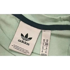 Show off your love for Adidas with this mint green Adidas Originals Linear Logo Trefoil T-Shirt in men's size medium. The shirt features short sleeves and a crew neckline, with a regular fit and all-season features. The Adidas logo accents the shirt, making it a great addition to any casual wardrobe.