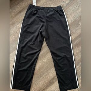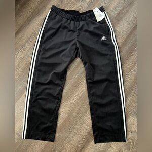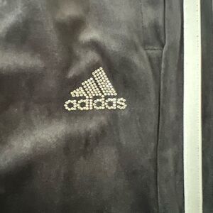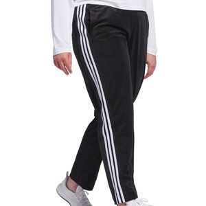 This listing is for a New With Tags (NWT) Adidas Plus Y2K Glam Velour Wide-Leg Track Pants in black and white, size 1X. Bring retro glamor to everyday style with these adidas pants. The classic cut keeps things comfortable, while the velvety-soft velour fabric feels soft and supple. Pair them with sneakers and a graphic tee for a laid-back look, or dress them up with heels and a cropped blazer. Whenever life calls for comfort with a side of glamor, these Y2K-inspired pants will have you set.