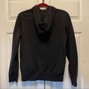 His cute hoodie is in excellent pre-owned condition. The front has the Adidas logo over a floral graphic. The hood has a drawstring.