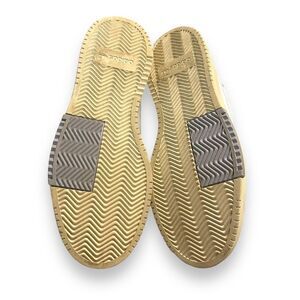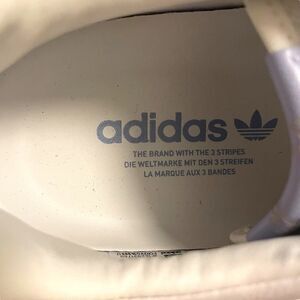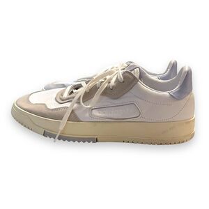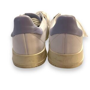 These awesome sneakers are in excellent pre-owned condition. However, there are a few little marks on the bottom rubber. Otherwise, they seem to barely have been worn. They are white leather with gray suede and periwinkle accents.