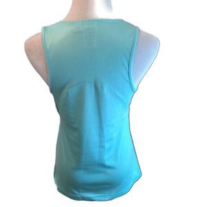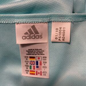 Adidas sleeveless v-neck workout top in a light blue with overall stretch. Bust 36” and length 26”.