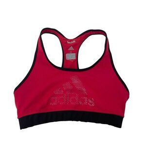 Adidas Sports Bra Racerback Techfit Unpadded Womens Size Small Red Glitter Logo
