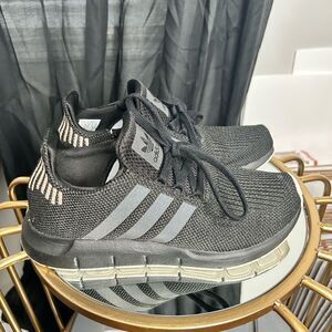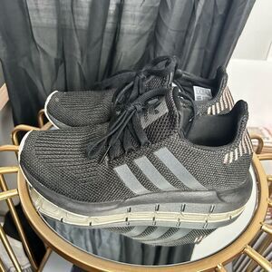 Size 6. Rose gold and Black. Has a plot on the inside of each shoe. Shown in pics.
