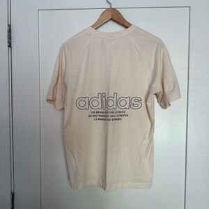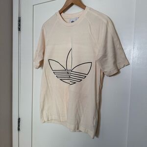 Adidas T-Shirt Mens Sz S Ivory Crewneck Embroidered Trefoil Logo RARE