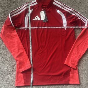 New! Adidas Tiro 26 1/4 zip top with white stripes. Long sleeves with thumb holes.