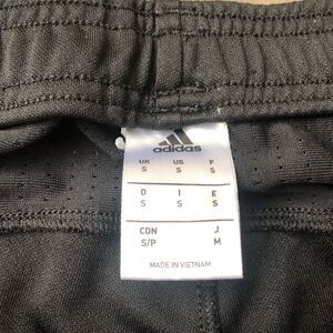 These Trio Track pull-on athletic pants by Adidas will keep you cool & comfortable when you’re on the move. Featuring elastic waist, side pockets, cropped ankles with zippers. Plus, front logo and grey stripes. Double knit polyester blend with Climacool protection. Like new.