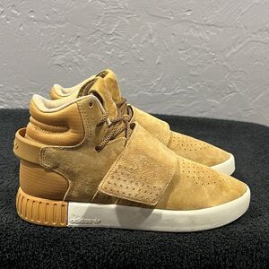 🔥🔥 Adidas Tubular Invader Tan Suede Hi-Top Strap Sneaker Shoes