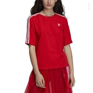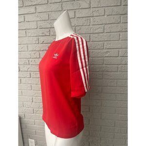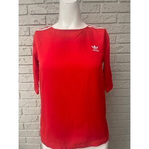 Adidas Women Red With Three White Stripe Short Sleeve Top Size XS