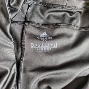 Stay stylish and supported during any workout with these Adidas AEROREADY leggings. Designed for comfort and performance, these sleek black leggings feature a faux leather look with a high-rise waistband and Adidas branding at the lower leg. Made with Primegreen recycled materials, these leggings are not only eco-conscious but also built for breathable, moisture-wicking comfort. Perfect for yoga, gym sessions, or athleisure wear.