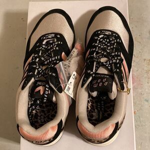 Part of the A-ZX series - a collection of 26 drops with each one using a letter of the alphabet as a symbol. Each drop is a hybrid that celebrates the legacy of the ZX silhouette and enriches it with an element that connects to its letter. This P drop is created in partnership with Pam Pam - the first sneaker store in the UK to specialize in a women's-only selection of top-tier, premium sneakers. It features the initials of its founders on it, Beth and Rio. They want to create a space where women from all walks of life can feel comfortable in their own sense of style. The leopard-print pony hair on this ZX 1000 makes it the bold shoe you'll wear on the right day. The silhouette was chosen for the history it has as it was the first adidas sneaker to retail in their store. It's one that has pushed the envelope in the running world in the '80s and lives on to be the streetwear staple that it is today.