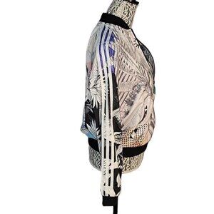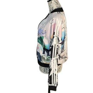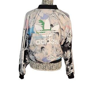 Adidas/farm rio colab Womens Floral Graphic Bomber Jacket Trefoil Logo Design Ri