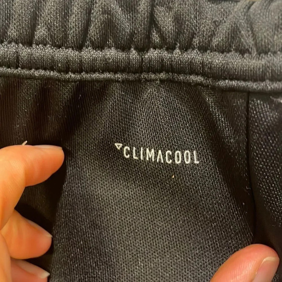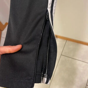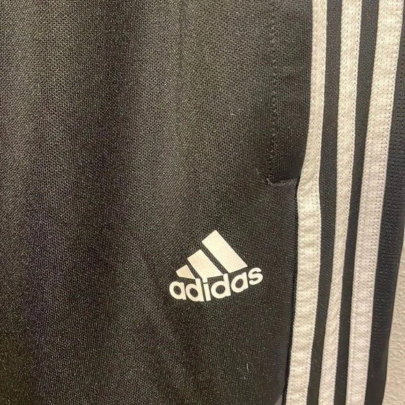 Adidas kids black sweatpants. They are in good condition. Waist laid flat 24 inches Rise 10 inches Inseam 24.5 inches They are a kids size medium. The pockets have a zipper.
