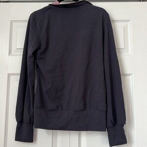 Comfy and Practical Jacket. Dark charcoal & blush color. 2 front pockets, folded collar, front zippered jacket