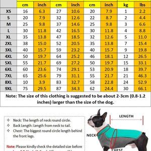 The size of each product is different. Do not choose based on buying habits. Before ordering, please check the size table carefully and choose the size that suits you. Consider the logistics speed. For growing dogs, please reserve more space. For the bust and back length, two values must be selected correctly. You can also contact the seller to suggest you choose a size. PLEASE measure your pup & refer to sizing chart for best fit!