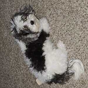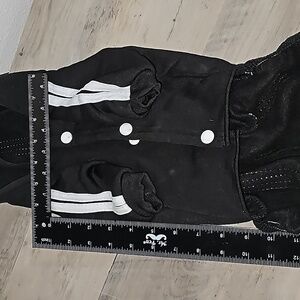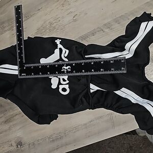 this fit my little guy, about 15lbs but he doesn't not like anything on his hind legs