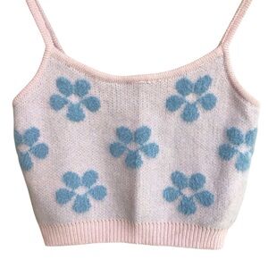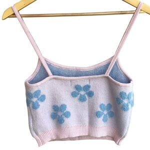 Adika Pink Blue Daisy Knit Cropped Top Size M-L NEW