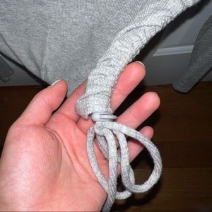 -grey long sleeve ribbed crop top with mock neck and ruched drawstrings on the sides