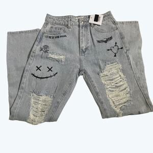 Adika · Size Small · Toxic High Waist Jeans Distressed Graphic Denim Light Wash
