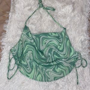 Cruz Satin-Finish Crop Top purchased from Adika, worn one time, sold out and not restocking! Super trendy green swirl print, got so many compliments on it. Size small!