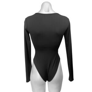 Adika Women's Black Rib Knit Plunge V-neck Long Sleeve Sweater Bodysuit Top Size S