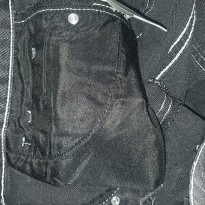 Adika jeans women's size medium black white trim button-fly raw-cut fray…