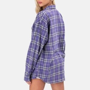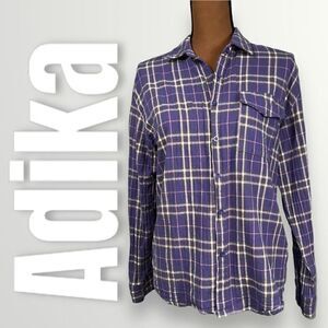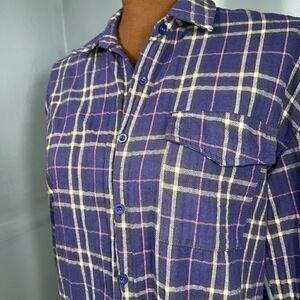 Adika, Button Up Plaid Flannel Top Purple & Multicolor Long Sleeve Women’s Small