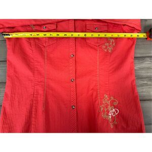 Adiktd Bling Western Bright Coral Shirt Embroidered Shirt Size Large