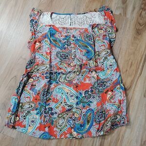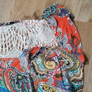 🔺️Adiktd Cream Lace & Multicolored Paisley Cap Sleeve Boho Top Large