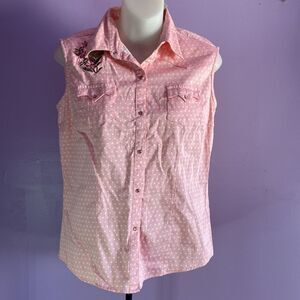 Adiktd Pink White Polka Dot Western Sleeveless Blouse Top Size S Small
