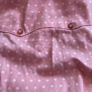 Details: Adiktd women's pink with white polka dots western style shirt sleeveless it snaps up the front it has real pockets its a size small