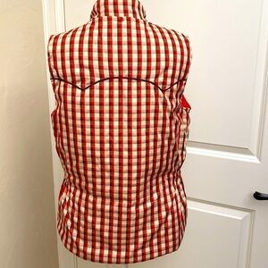 Adiktd Red/Plaid Reversible quilted Vest Women’s L pockets Snaps Festive Winter