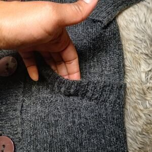 The pockets are faux/ not functional. The buttons appear to have some wear/scratches. Sweater is in overall good condition. No holes